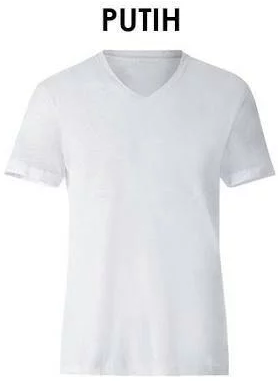 Baju kaos polos leher V dengan berbagai warna dan ukuran.